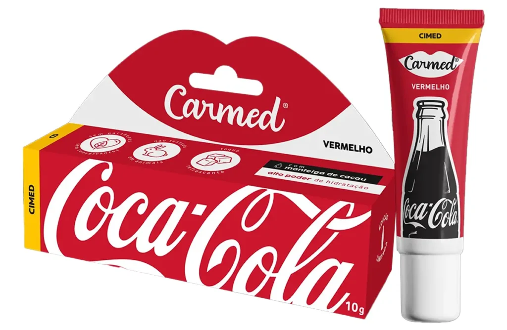 Assim como no caso da Foroni, a Carmed aposta na Experiência Sensorial. O produto tem o cheiro da Coca-Cola. Isso ativa memórias afetivas de almoços em família, cinema e festas.