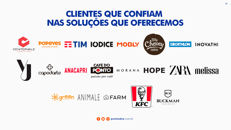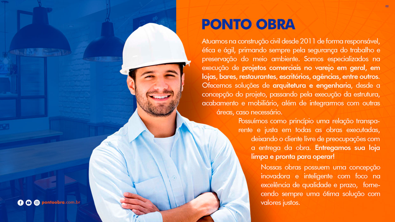 A Ponto Obra não levanta apenas paredes; desde 2011 eles entregam lojas, bares e escritórios prontos, cuidando de tudo: da estrutura bruta até o design do mobiliário. O desafio era criar uma comunicação digital que transmitisse essa capacidade de entrega “chave na mão” e o perfeccionismo estético que eles aplicam em cada obra.